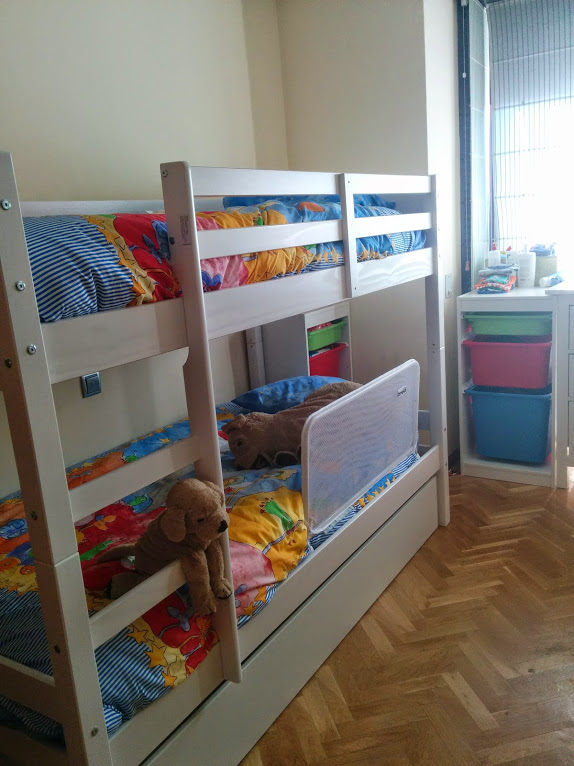 No obstante, y aunque llevábamos tiempo pensando en ello, encontramos hace un par de semanas unas literas que nos gustaron más que otras que habíamos visto; ¿y por qué más? Pues porque debajo de la cama inferior hay un cajón de almacenaje que viene muy, pero que muy bien.